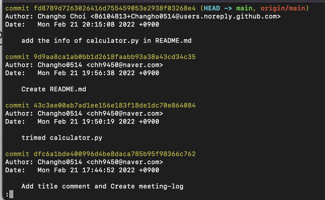 노란색으로 나온 글자가 커밋 아이디. 커밋 해시라고 한다.
