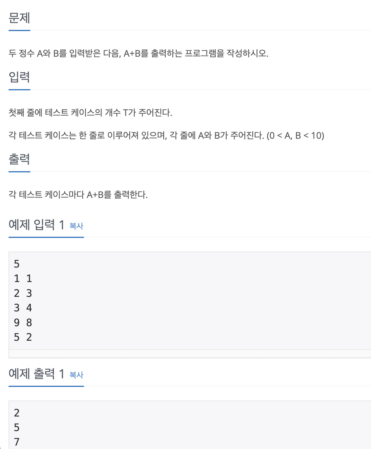 첫번째 줄에 "테스트 케이스의 개수 T" 가 주어진다.