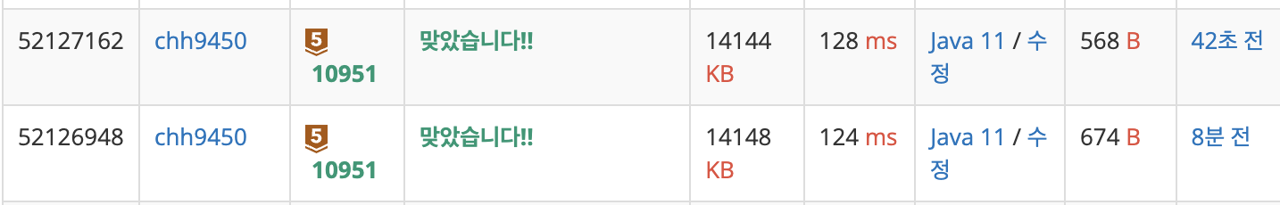 | [백준] 10950번 - "A + B - 3" - JAVA[자바] (0) | 2022.11.25 |