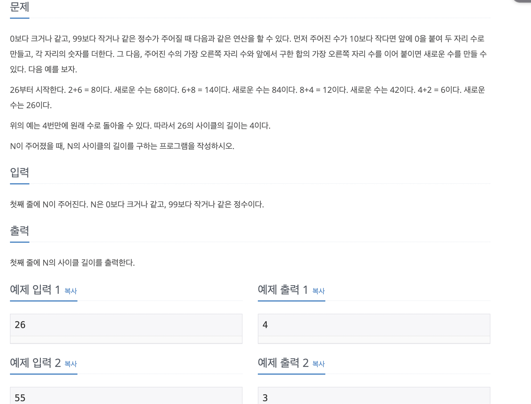 (만약 N 이 한 자릿수 정수라면 앞에 0을 붙여서 더한다.)