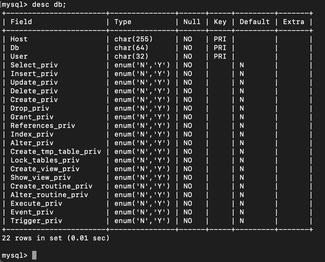 가끔 \G 옵션을 넣지 않아 한 열에 모든 내용을 다 출력해버린다면 쿼리문 결과를 확인하기 불편하기 때문에 많이 사용되는 옵션이다.