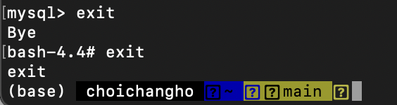 Docker MySQL 해당 컨테이너를 아예 종료하고 싶다면? exit 명령어를 통해 종료할 수 있다.