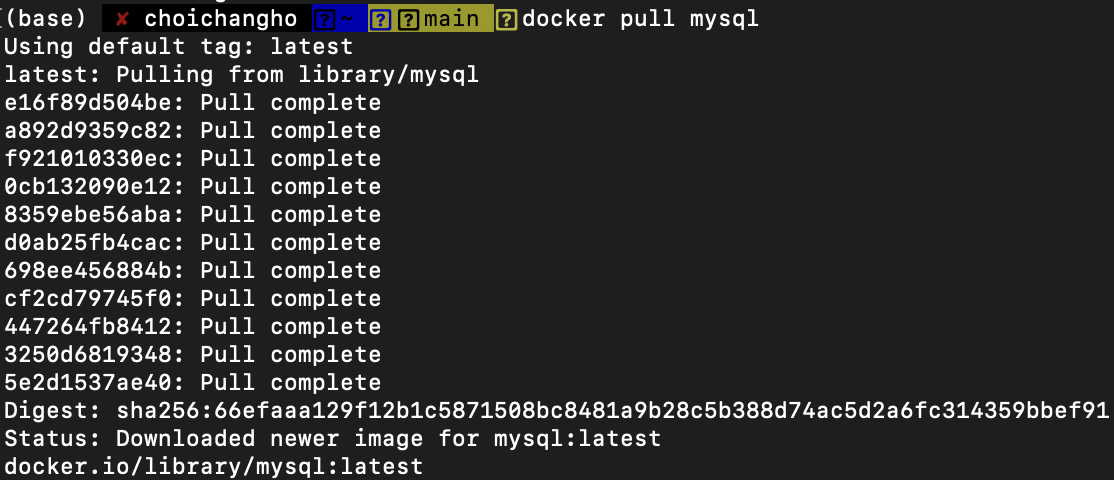 docker pull mysql 명령어를 사용하면 MySQL Docker 이미지를 다운로드 받을 수 있다.
