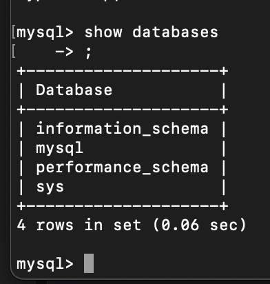 위의 화면이 나오면 MySQL 서버 접속에 성공했다.