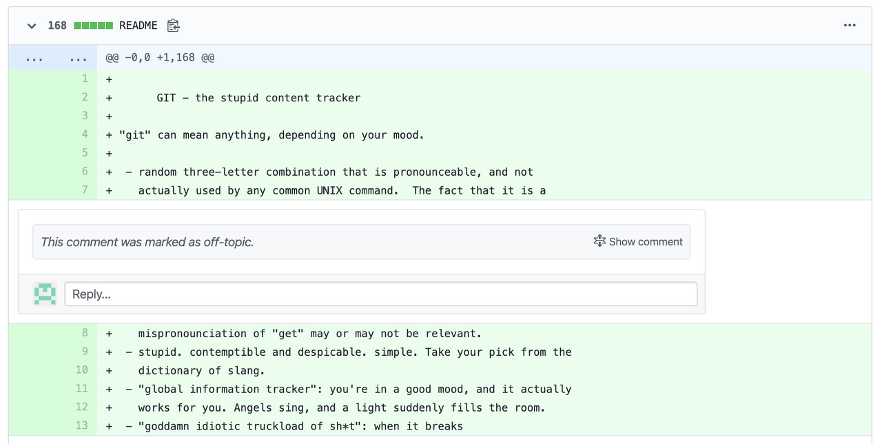 리누스 토발즈가 깃을 맨 처음 만들었을 때 남겼던 기록을 보면 힌트를 얻을 수 있는데