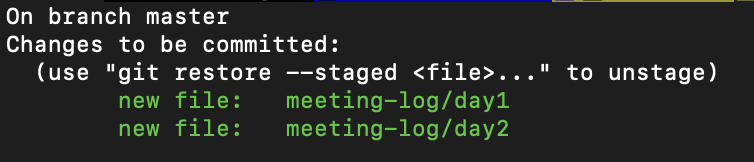 확인해보면 위와 같이 staging area에 올라가지 못한 내용이 2개 발생했다.