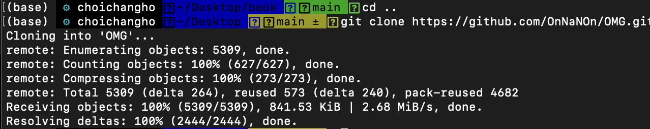내 로컬 레포지토리에 성공적으로 프로젝트를 가져올 수 있다.