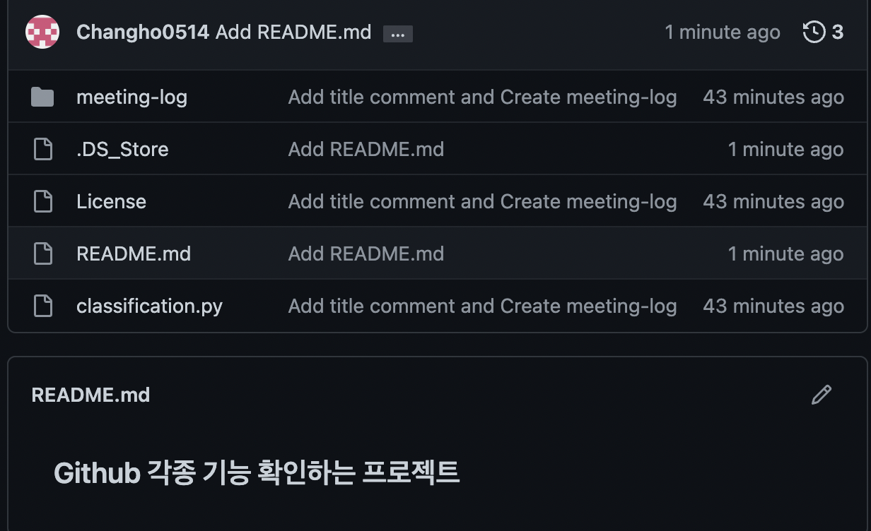 github 홈페이지에서 README.md 파일을 직접 수정하고
