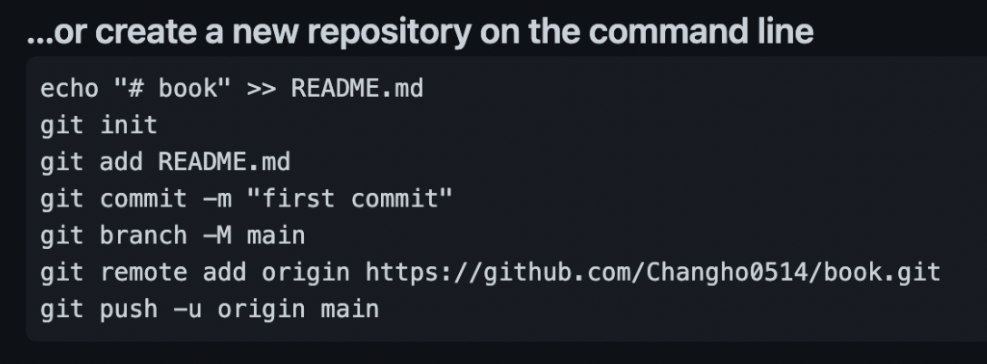 이 부분은 로컬 레포지토리를 만들고 커밋을 한 후에 깃허브에 업로드 하는 것이고,