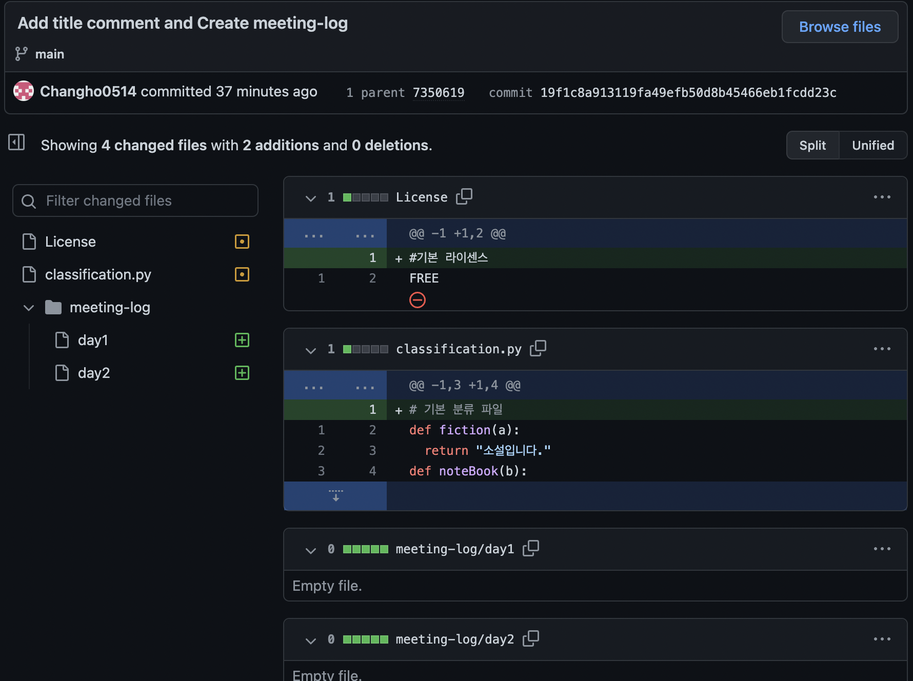 커밋을 눌러보면, 아래와 같이 자세한 내용을 확인할 수 있다.