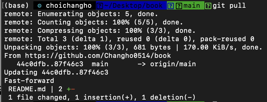 반대로, Remote Repository에서 바뀐 내용을 Local Repository에 반영하려면?
