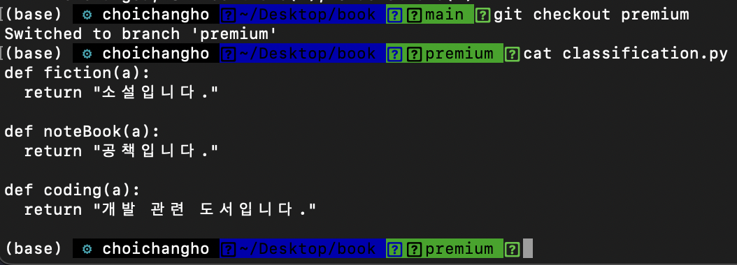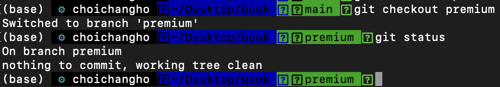 "git checkout premium" 으로 해당 브랜치로 이동해준다.