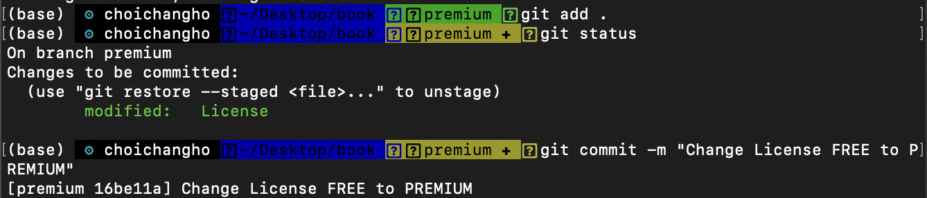premium 브랜치 위에있을때 License 파일을 출력해보면