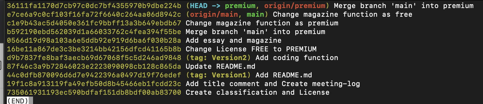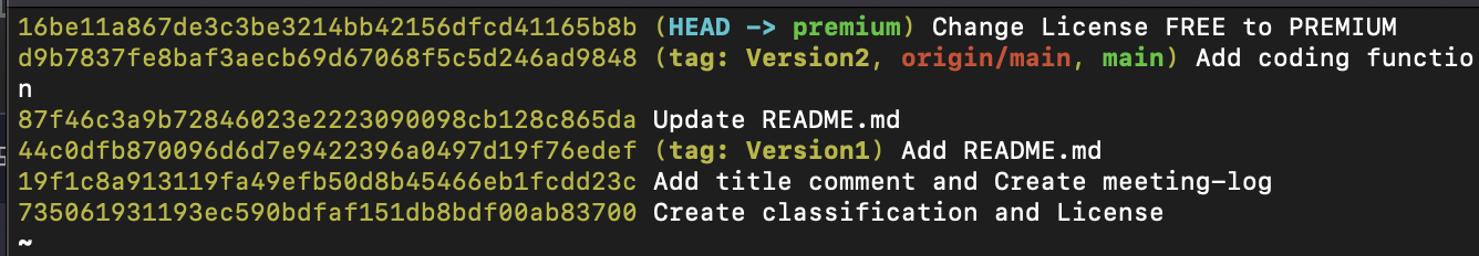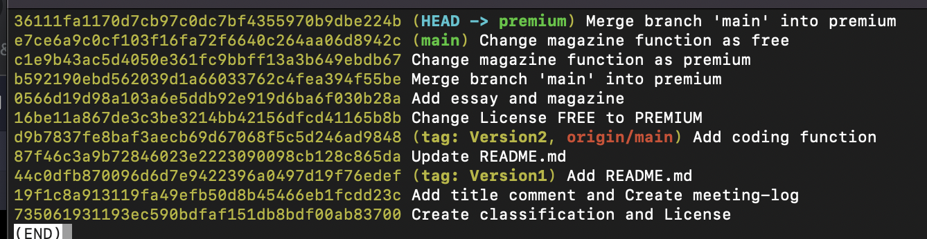 이제 작업을 하면 premium 브랜치에만 반영된다. 이제 내 커밋들은 main 브랜치와는 다른 작업이 된다.
