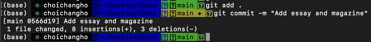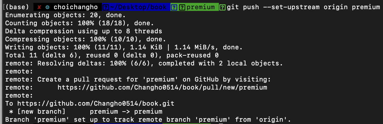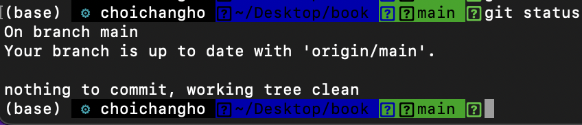 그 다음에는 origin https://github.com/Changho0514/book.git이라고 써있는 것은