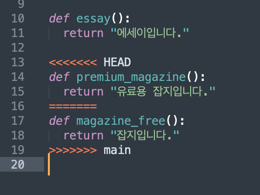 똑같은 magazine함수를 서로 다른 브랜치에서 서로 다른 이름으로 바꾸었다.