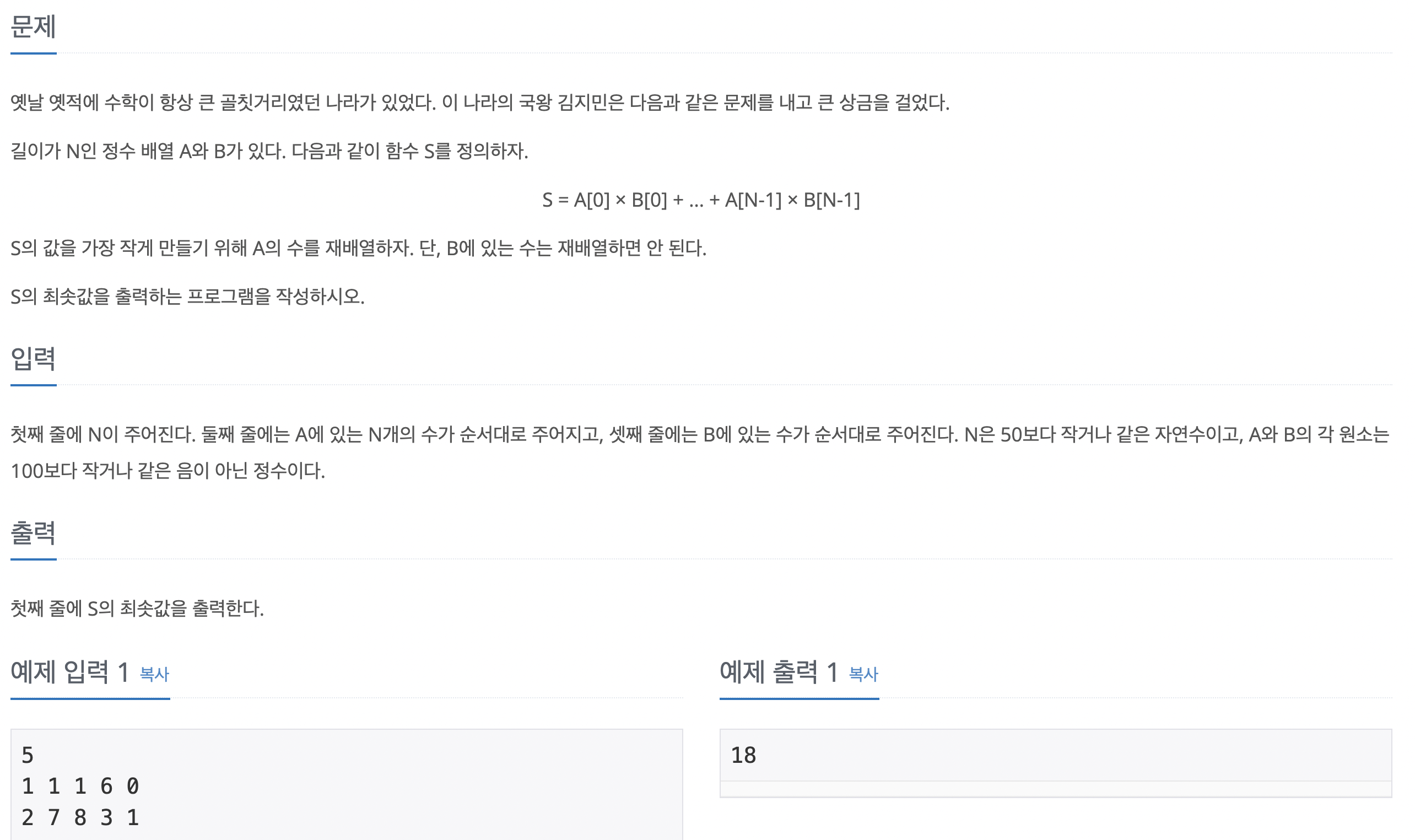 // A의 가장 작은 수와 B의 가장 큰 수 곱해주기