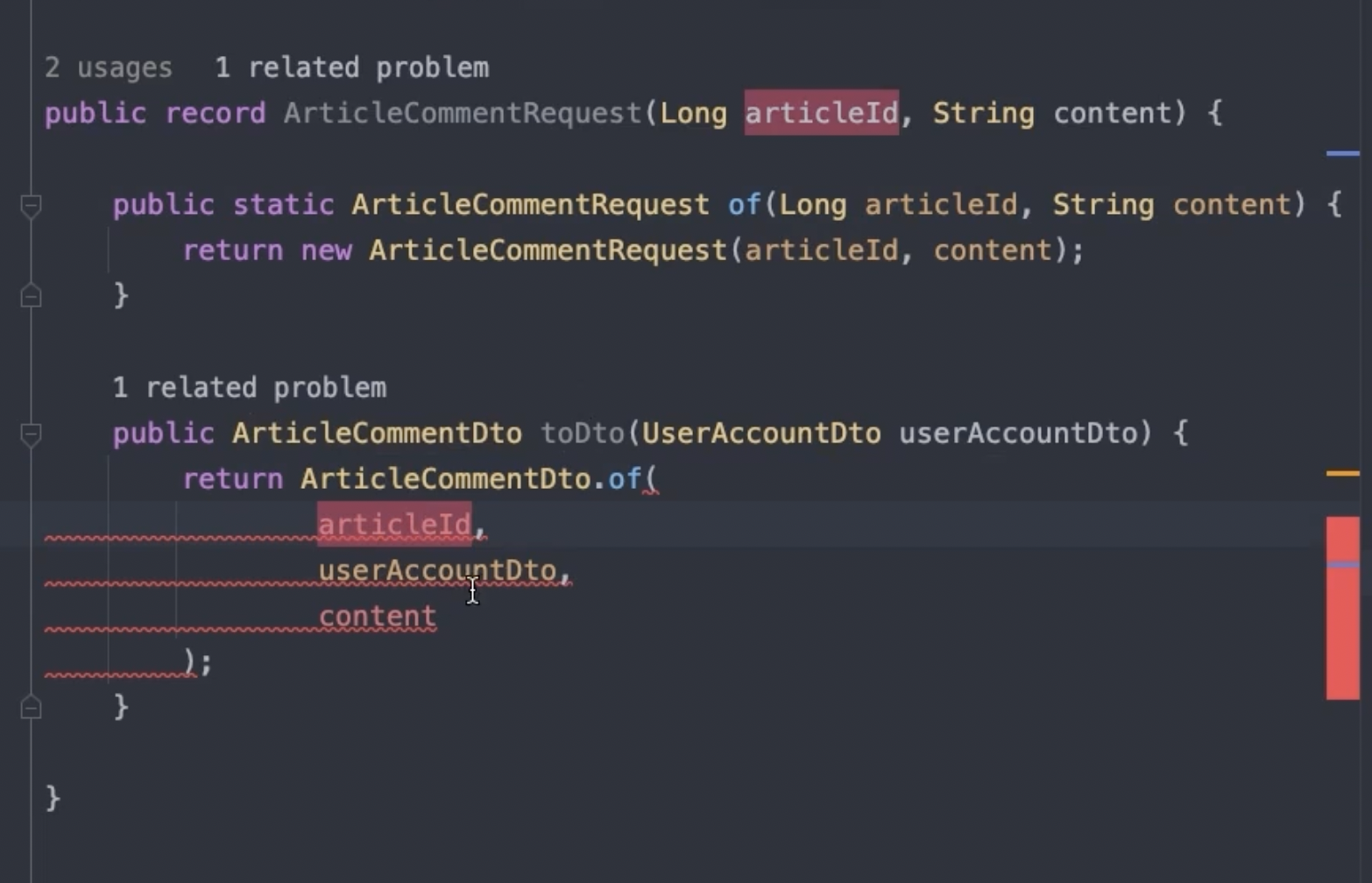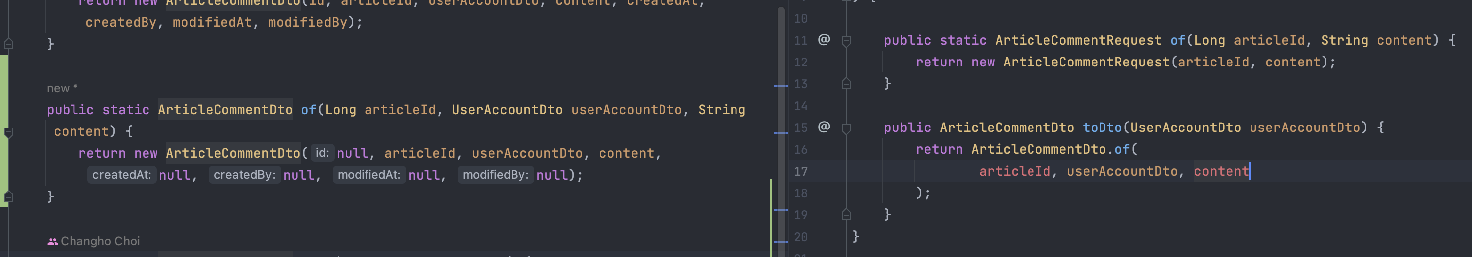 위와 같은 코드가 있을 때, Dto로 바꿔주는 메서드를 다른 클래스에 넣을 필요도 없고,