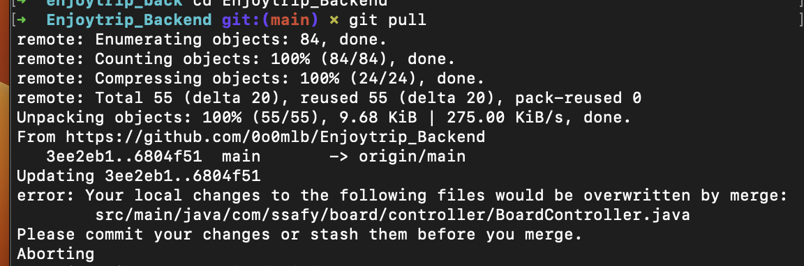 ``` Please commit your changes or stash them before you merge. ``` 에 있다.