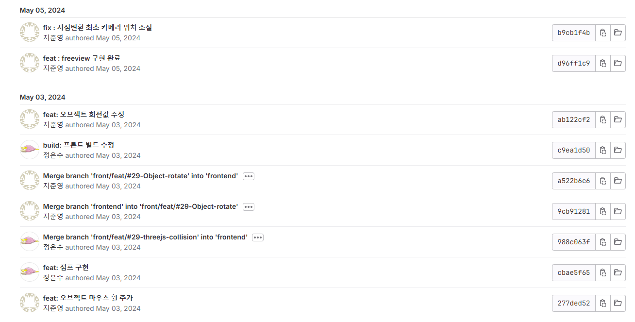 - 여러 명이 동시에 여러 기능을 feature 브랜치에서 독립적으로 명확하게 나누어 개발할 수 있었습니다.