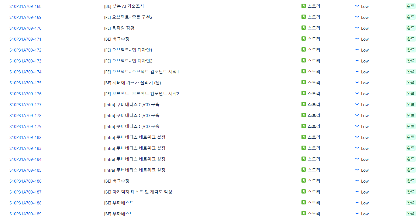우선 Jira를 이용해 1주일간격으로 스프린트를 관리하고 프로젝트를 진행했습니다!